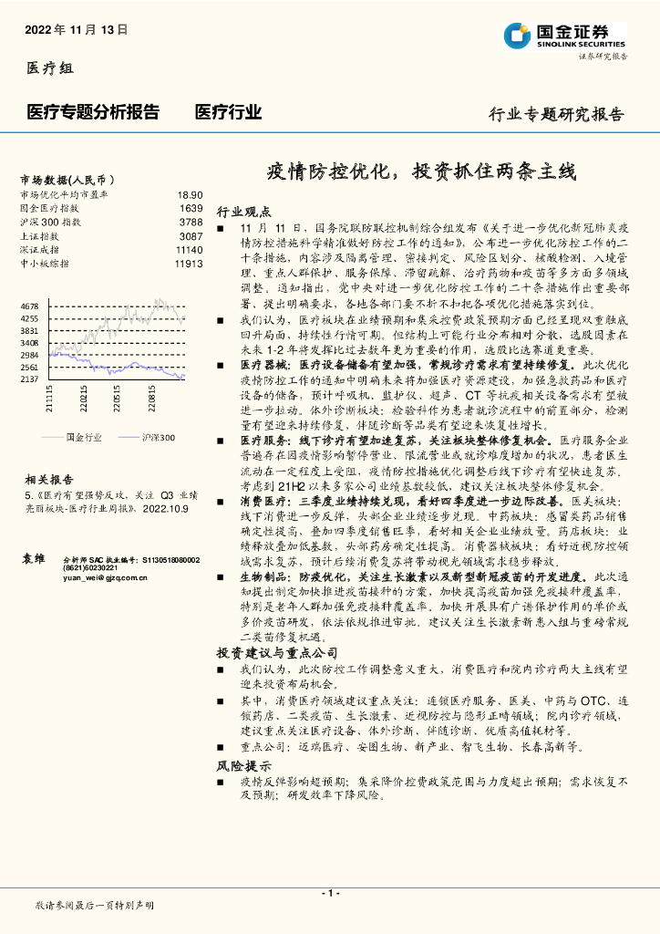 国金证券:医疗专题分析报告:疫情防控优化,投资抓住两条主线.pdf