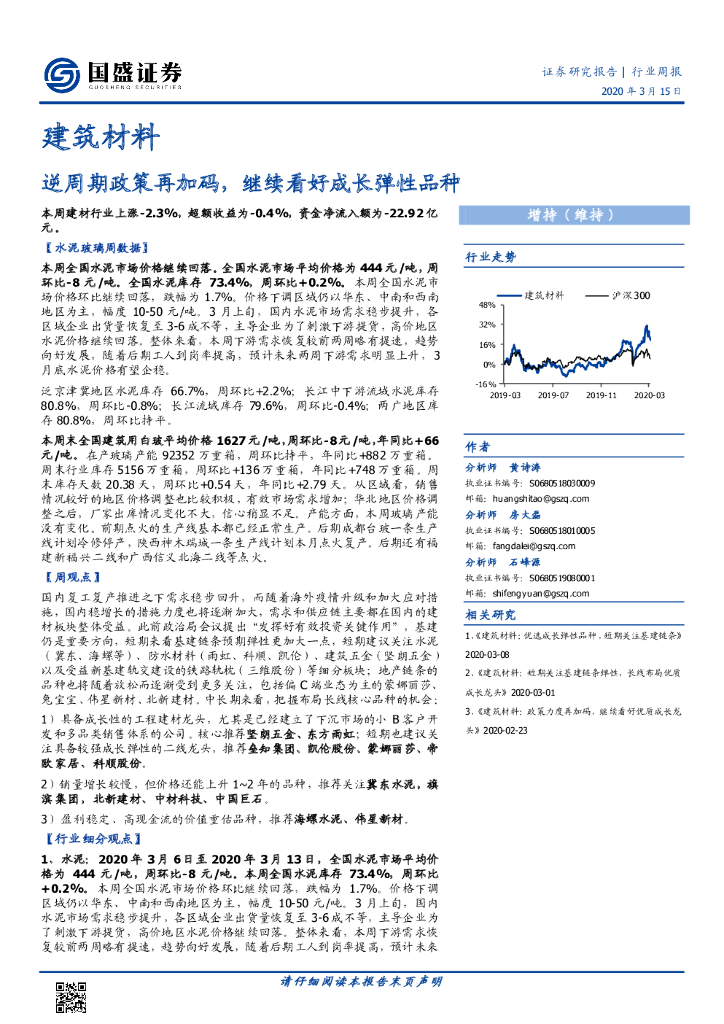 国盛证券:建筑材料行业周报:逆周期政策再加码,继续看好成长弹性品种.pdf