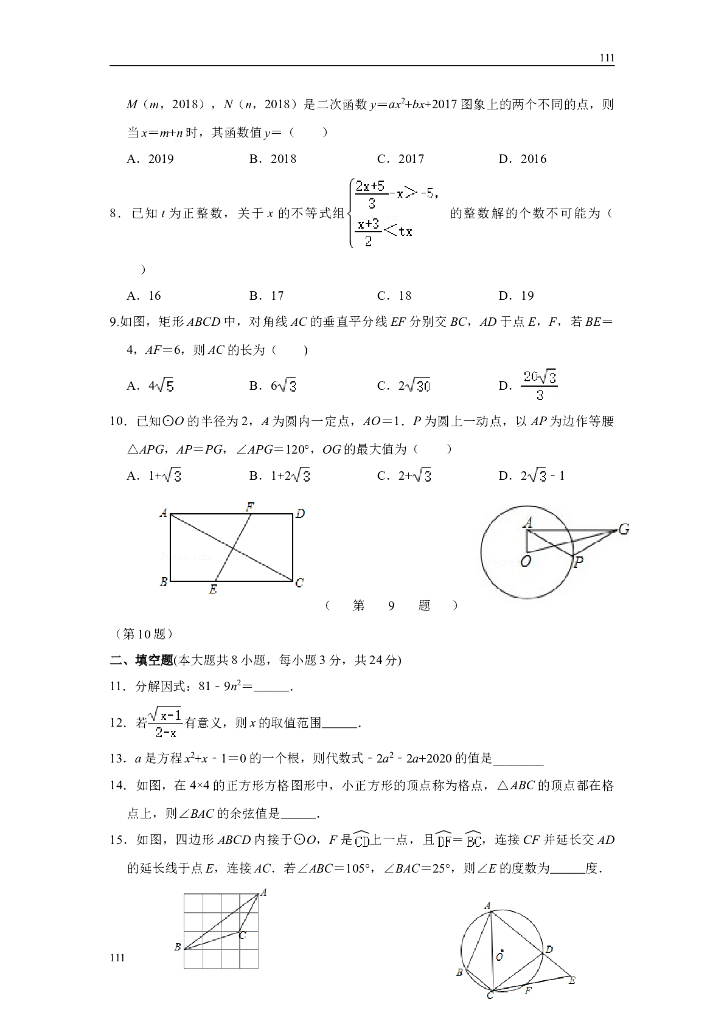 昆山九校联考2020年初三数学模拟测试(含答案)(1)附答案.doc