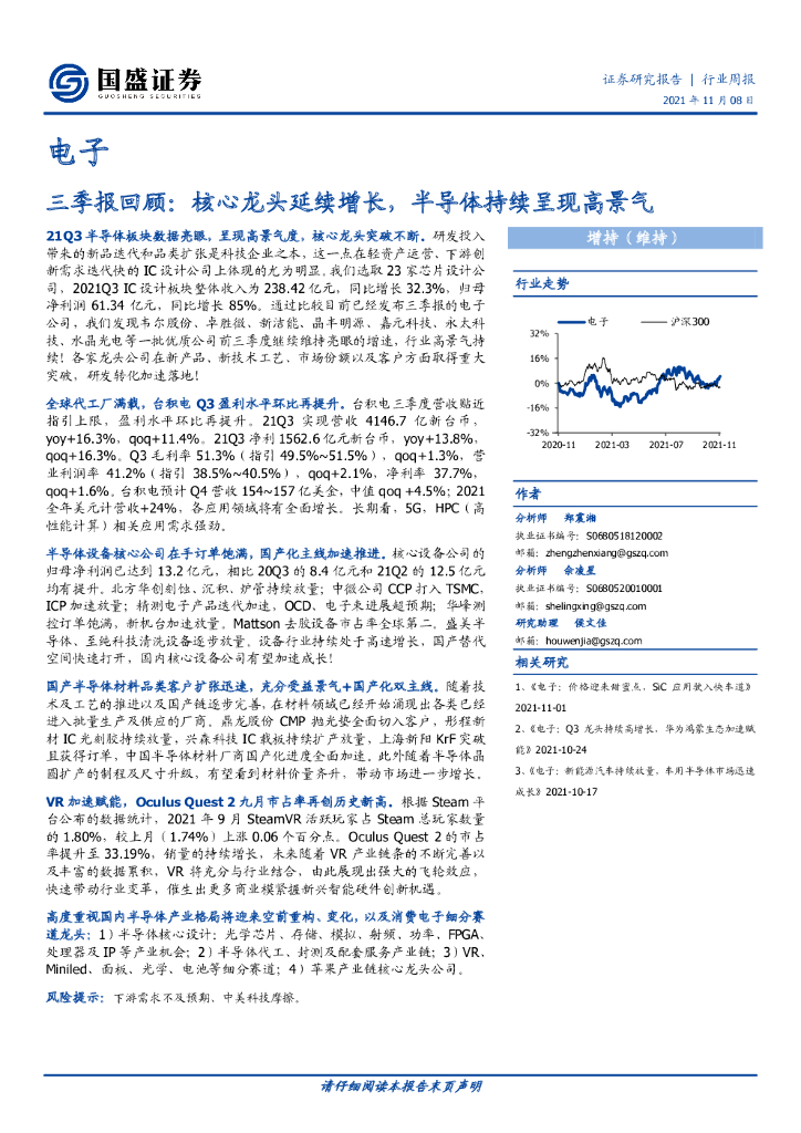 国盛证券:电子-三季报回顾:核心龙头延续增长,半导体持续呈现高景气.pdf
