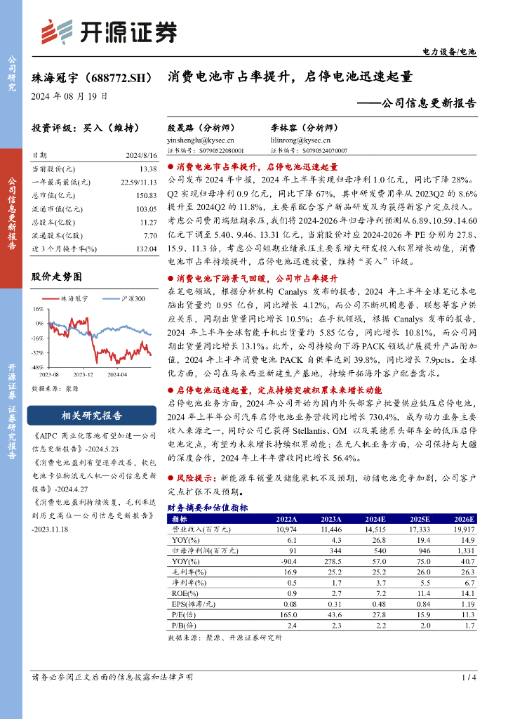 开源证券:珠海冠宇(688772)-公司信息更新报告:消费电池市占率提升,启停电池迅速起量.pdf
