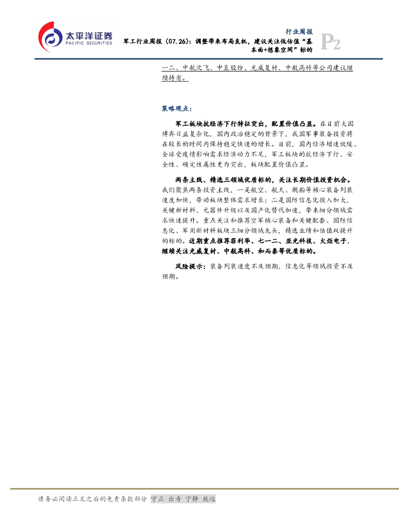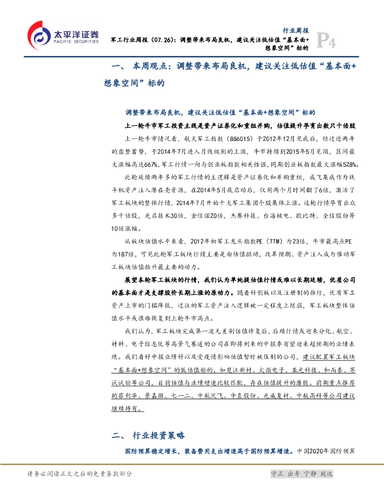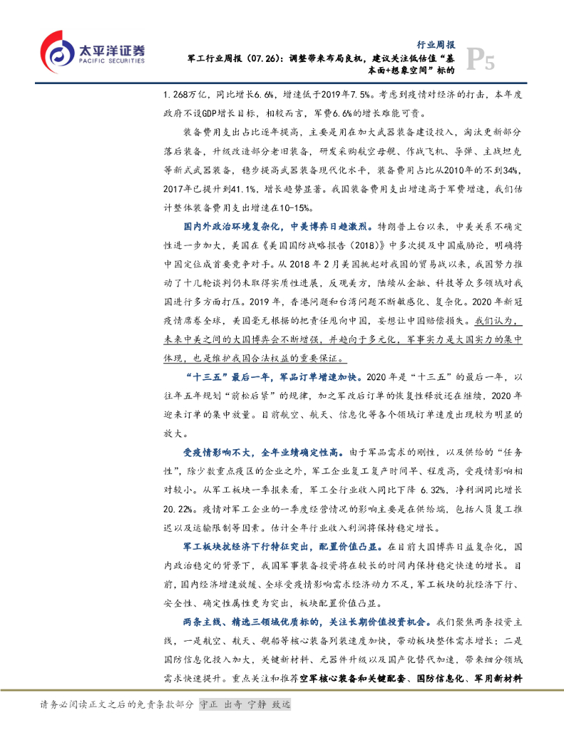 太平洋证券:军工行业周报:调整带来布局良机,建议关注低估值“基本面+想象空间”标的.pdf