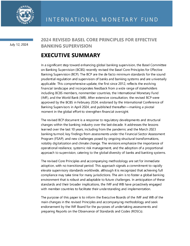 国际货币基金组织:2024年修订的巴塞尔有效银行监管核心原则报告(英文版).pdf