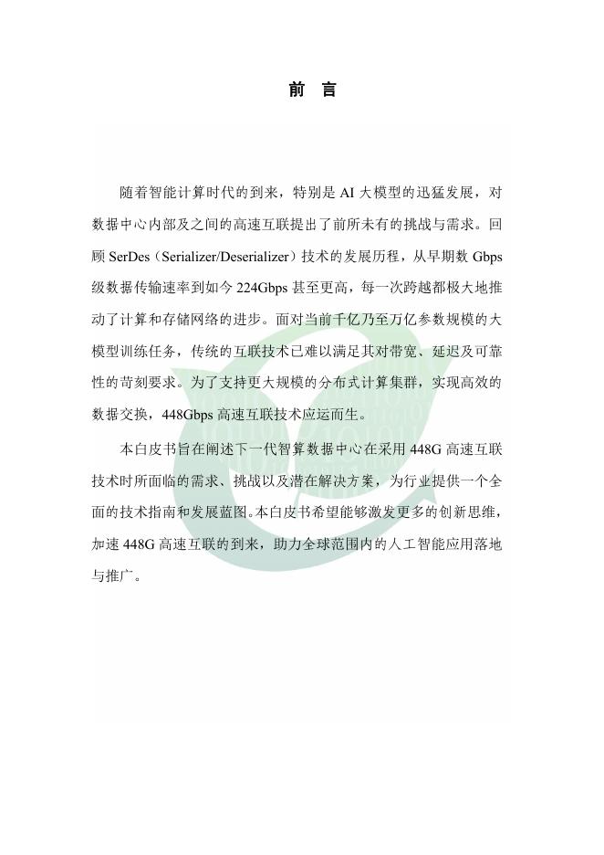 ODCC开放数据中心委员会:2025年下一代智算DC高速互联448Glane需求白皮书.pdf