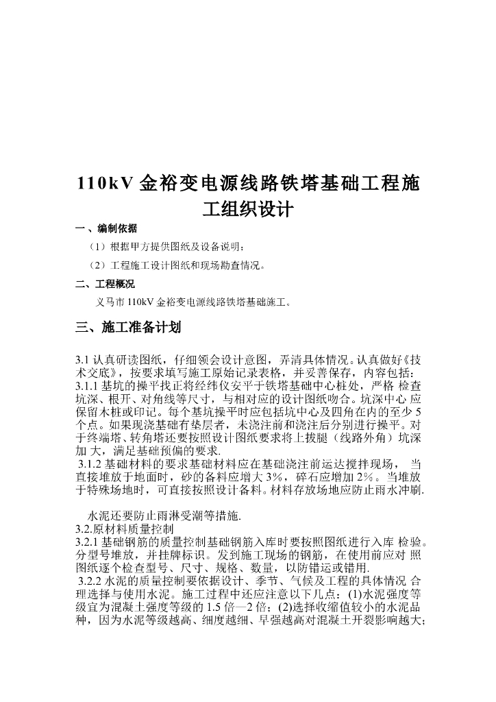 110kV金裕变电源线路铁塔基础工程施工组织.doc
