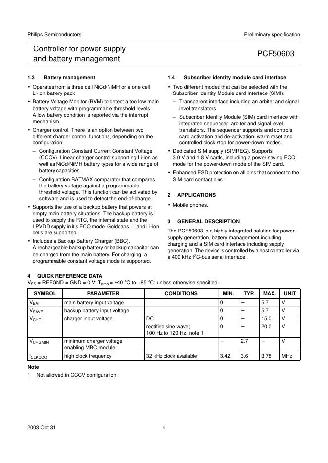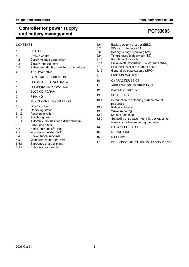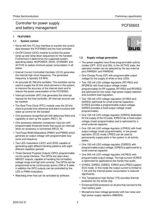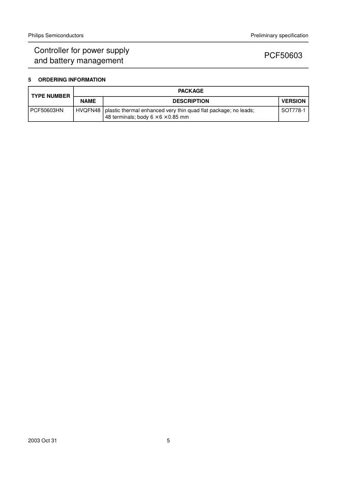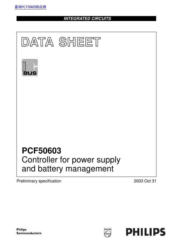 PHILIPS PCF50603 Controller for power supply and battery management 数据手册.pdf