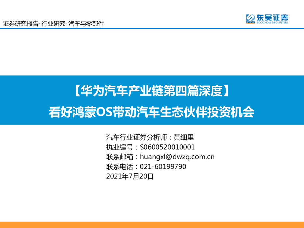东吴证券:【华为汽车产业链第四篇深度】看好鸿蒙OS带动汽车生态伙伴投资机会.pdf