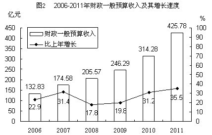 全年财政总收入688.95亿元,比上年增长34.8%,其中财政一般预算收入425.78亿元,增长35.5%。财政一般预算支出520.89亿元,增长29.1%。
