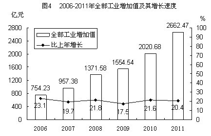 全市实现工业增加值2662.47亿元,比上年增长20.4%,其中规模以上工业实现增加值2014.16亿元,增长22.0%。