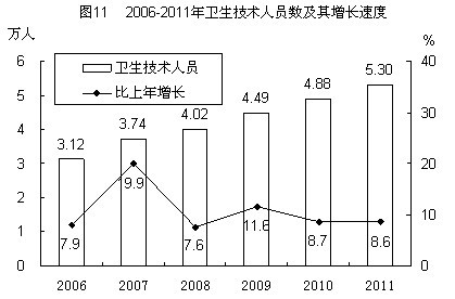 全市拥有卫生机构2680个,其中医院、卫生院255个;卫生防疫、防治机构12个;妇幼保健机构11个。卫生技术人员5.30万人,增加0.42万人,其中执业医师、执业助理医师1.91万人,增加0.08万人;注册护士2.30万人,增加0.25万人。卫生机构床位4.70万张,增加0.44万张,其中医院、卫生院4.30万张,增加0.30万张。