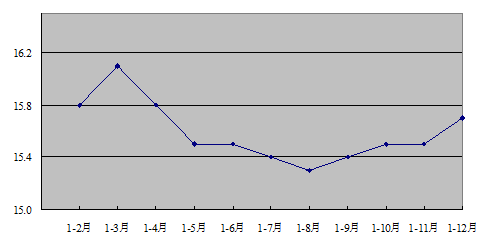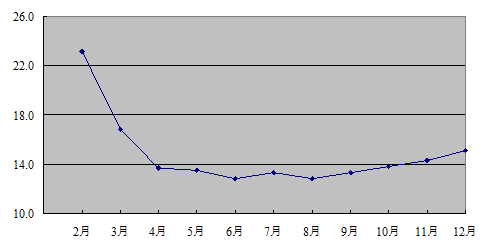 图4:2012年各月社会消费品零售总额累计增长速度