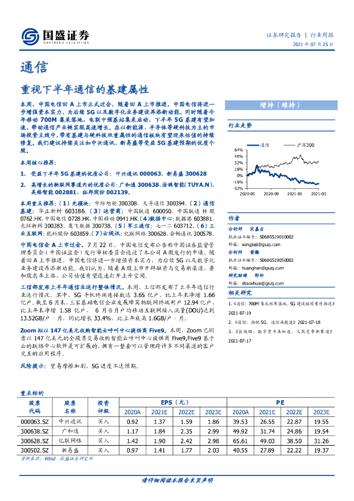 国盛证券:通信行业周报:重视下半年通信的基建属性.pdf