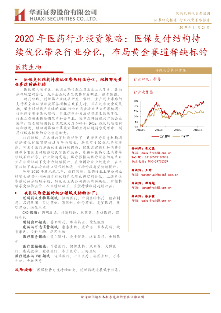 华西证券:2020年医药行业投资策略:医保支付结构持续优化带来行业分化,布局黄金赛道稀缺标的.pdf