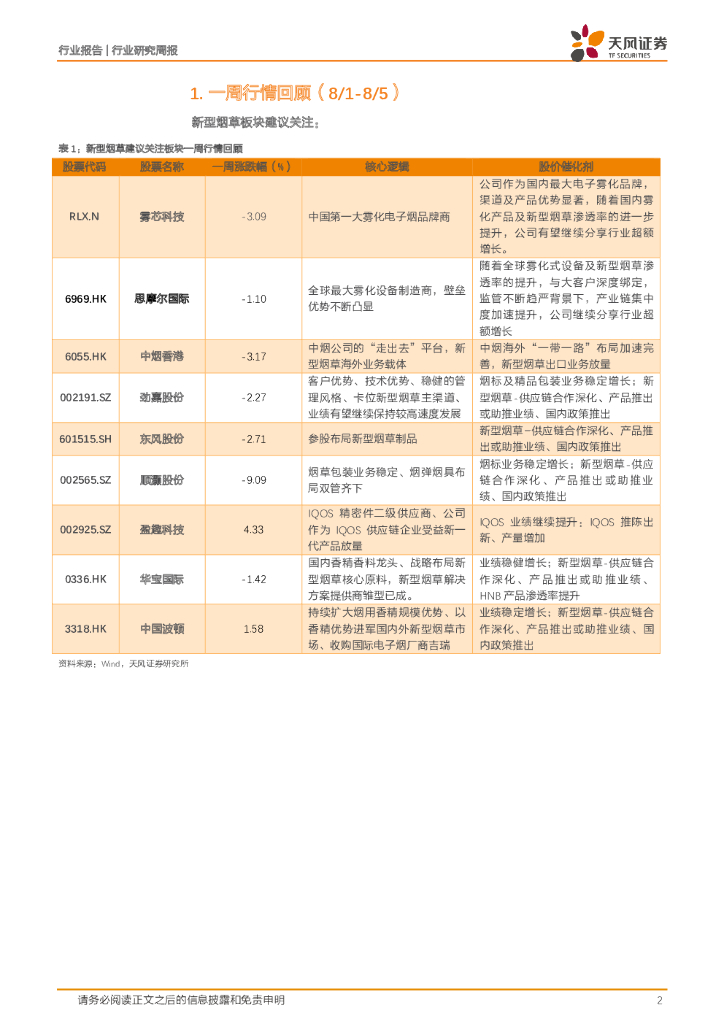 天风证券:新兴产业行业研究周报:日本烟草公布2022年上半年业绩,减害产品业绩持续增长,上调全年收入预期!.pdf