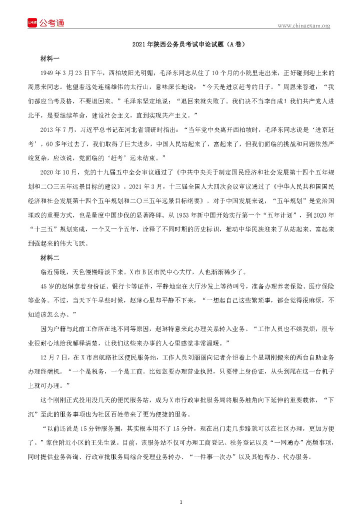 2021年陕西公务员考试申论试题(A卷).pdf