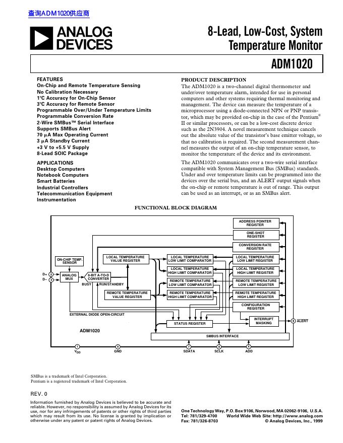 ANALOG DEVICES ADM1020 8-Lead, Low-Cost, System Temperature Monitor 数据手册.pdf