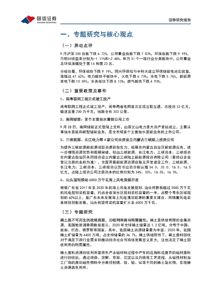 国信证券:环保公用2022年10月投资策略:能源问题持续,建议关注屋顶光伏;稀土价格企稳,建议关注稀土回收.pdf