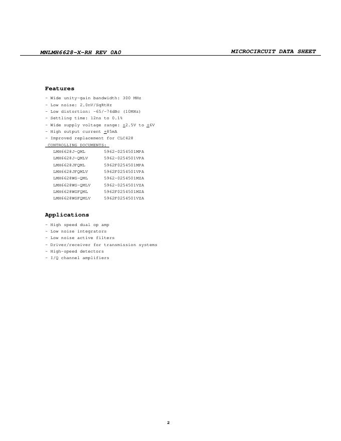 National Semiconductor MNLMH6628-X-RH REV 0A0 数据手册.pdf