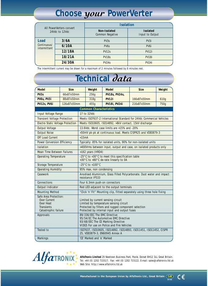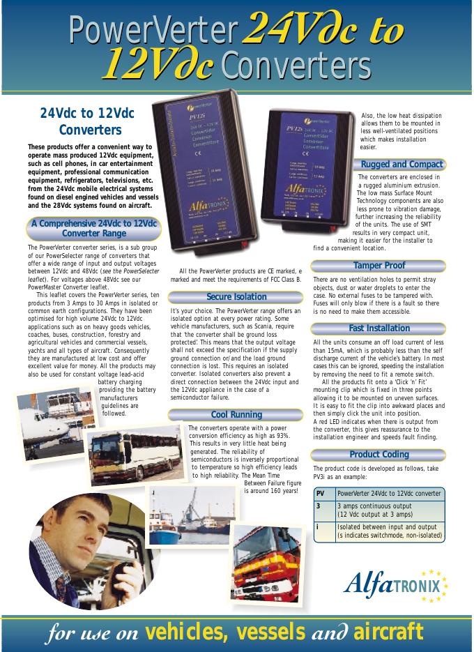 ALFATRONIX PowerVerter 24Vdc to 12Vdc Converters 数据手册.pdf