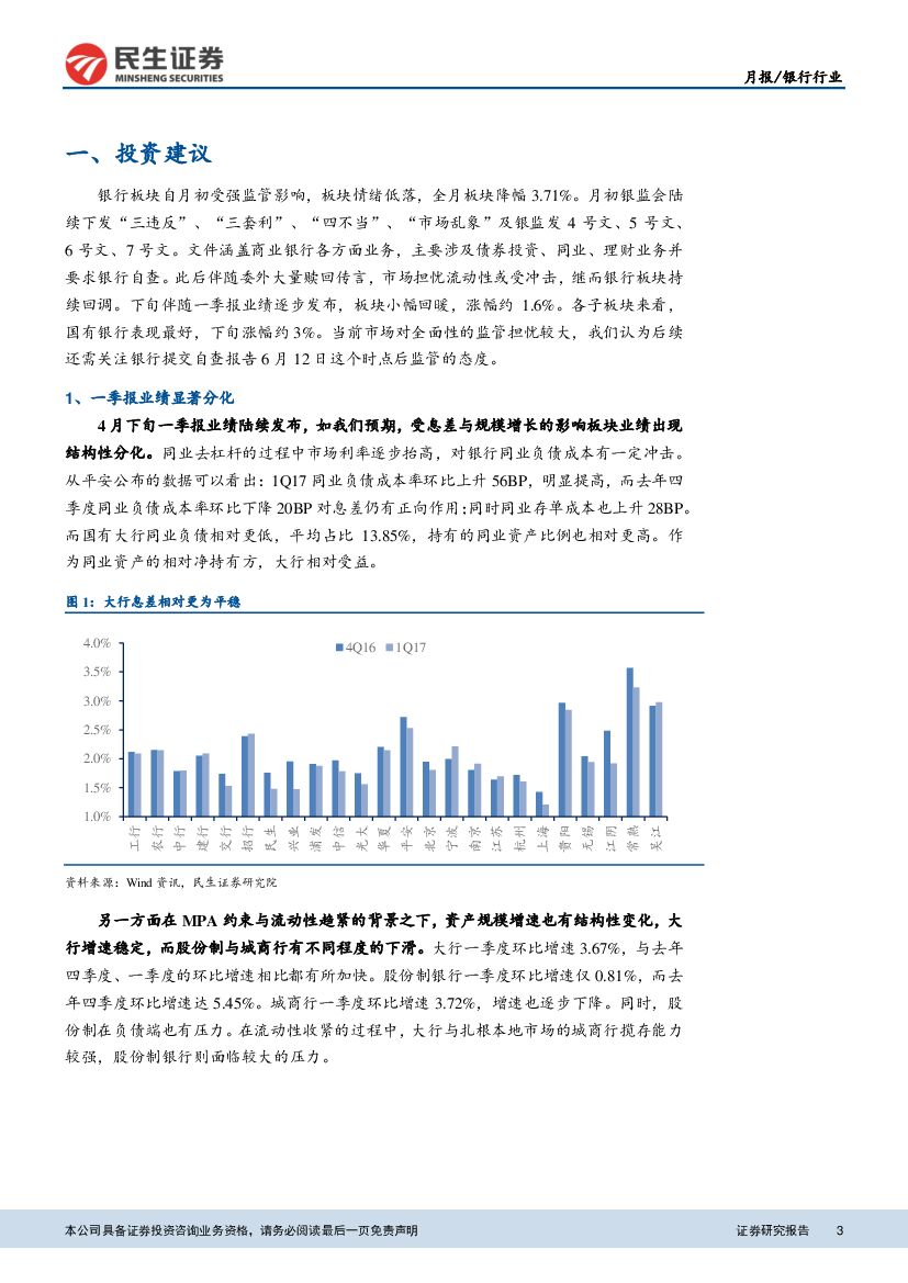 民生证券:银行业月报:季报业绩结构性分化,强监管下关注大行.pdf