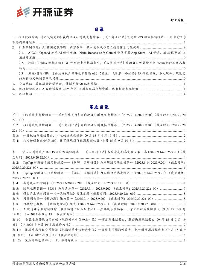 开源证券:传媒行业周报:继续把握游戏、AI、内容创新投资机会