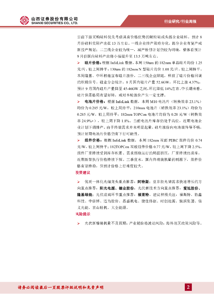 山西证券:太阳能行业周报:7月国家能源局核发绿证1.82亿个,龙头硅片企业宣布涨价.pdf