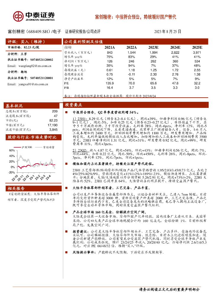 中泰证券:富创精密:中报符合预告,持续看好国产替代.pdf