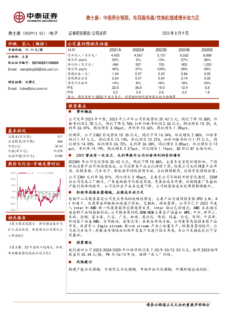 中泰证券:奥士康:中报符合预期,布局服务器/交换机领域增长动力足.pdf