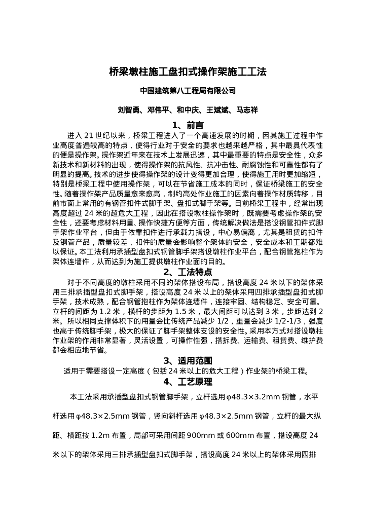 QHGF-2022052 桥梁墩柱施工盘扣式操作架施工工法.doc