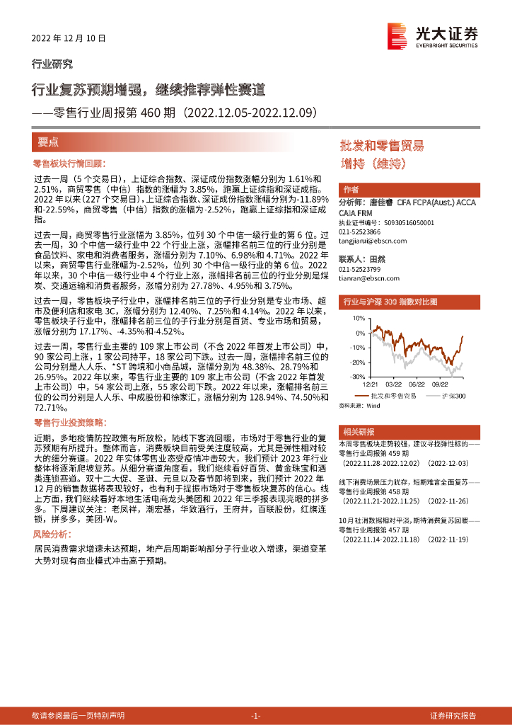 光大证券:零售行业周报第460期:行业复苏预期增强,继续推荐弹性赛道.pdf
