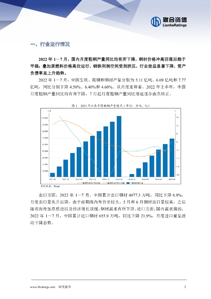 联合资信:2022年上半年钢铁行业信用风险总结与展望.pdf