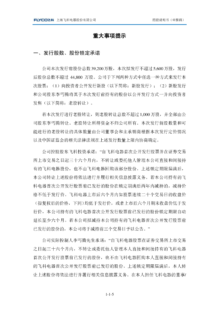 上海飞科电器股份有限公司上交所主板IPO上市招股说明书.pdf