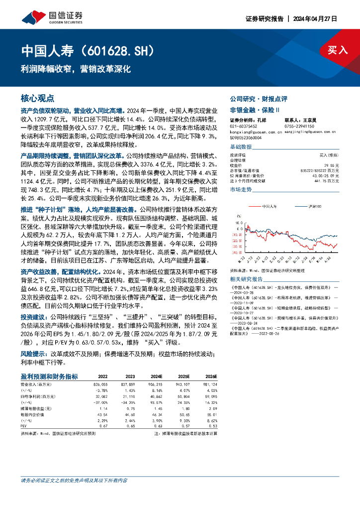 国信证券:中国人寿(601628)-利润降幅收窄,营销改革深化.pdf