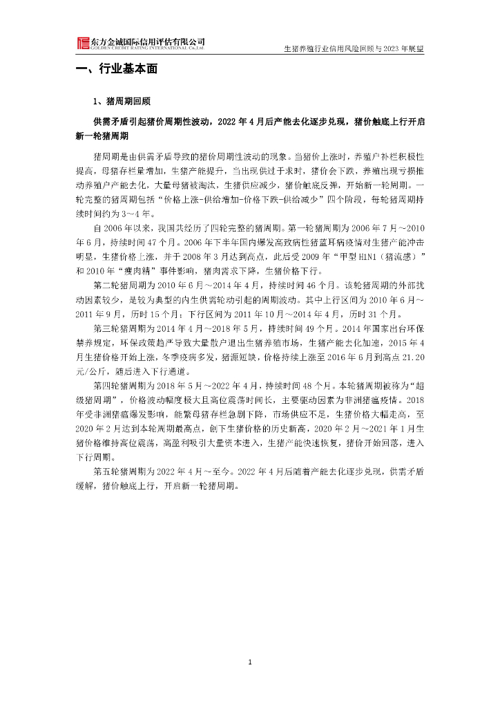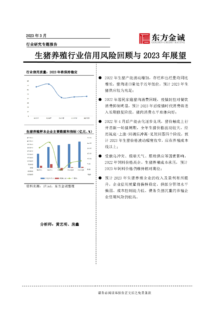 东方金诚:展望系列-生猪养殖行业信用风险回顾与2023年展望.pdf