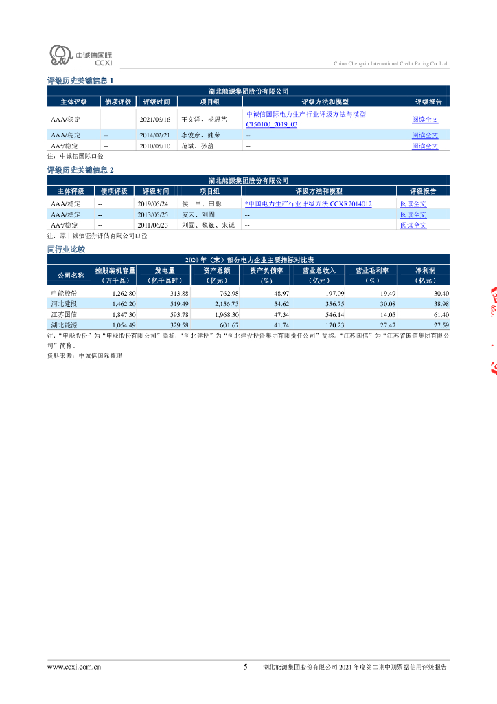 中诚信:湖北能源集团股份有限公司2021年度第二期中期票据信用评级报告.pdf