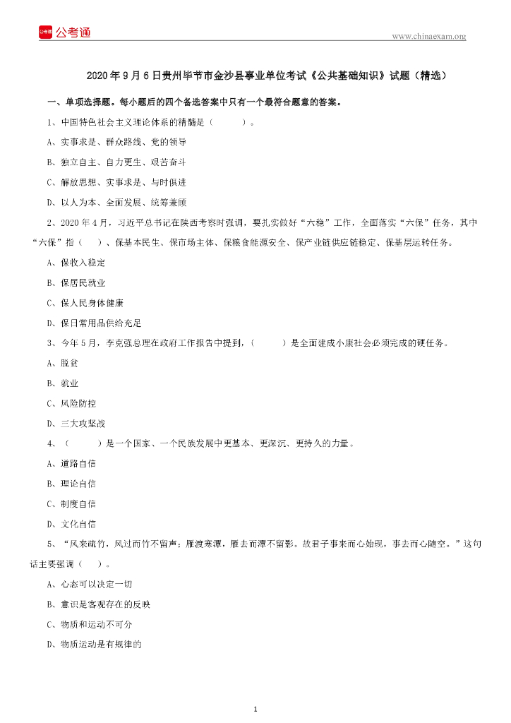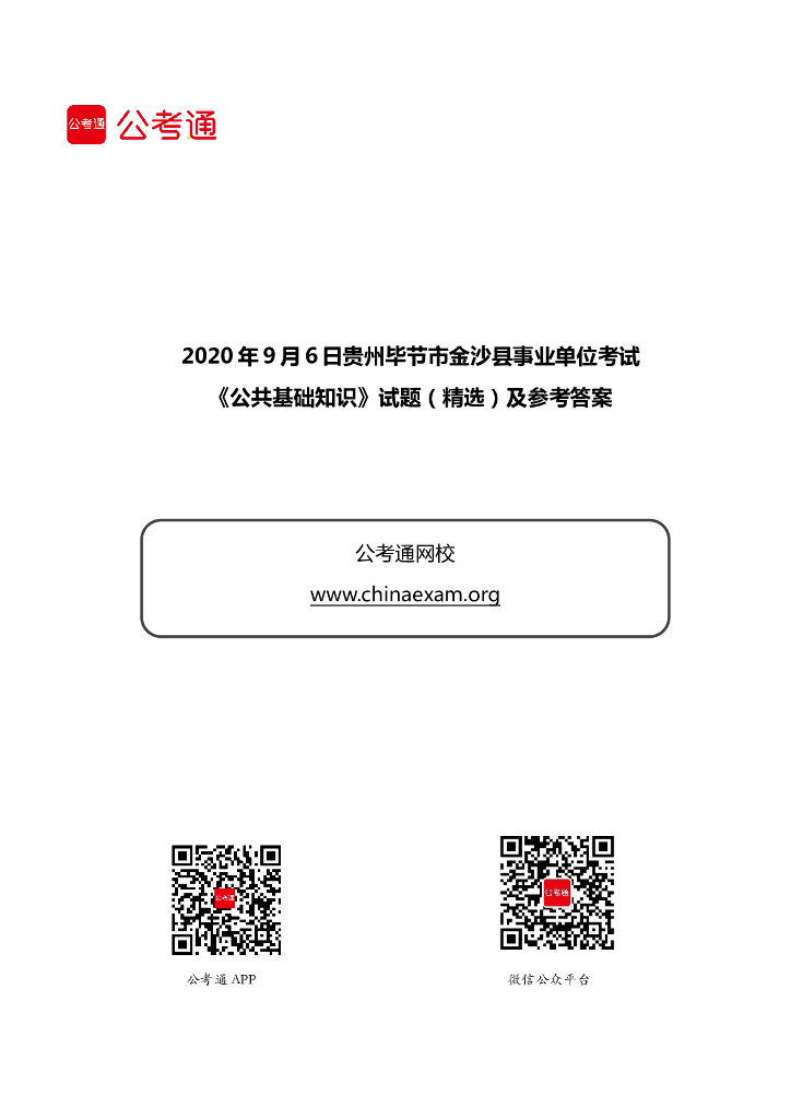 2020年9月6日贵州毕节市金沙县事业单位考试《公共基础知识》试题(精选).pdf