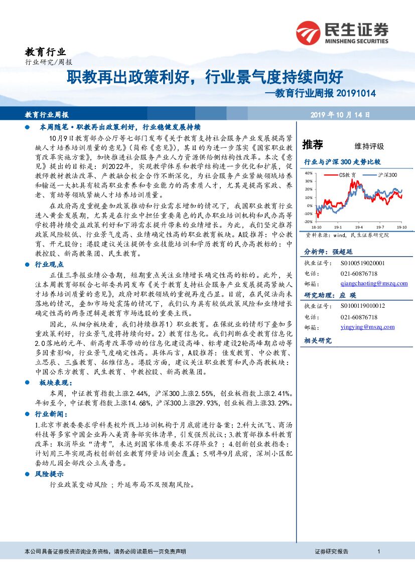 民生证券:教育行业周报:职教再出政策利好,行业景气度持续向好.pdf
