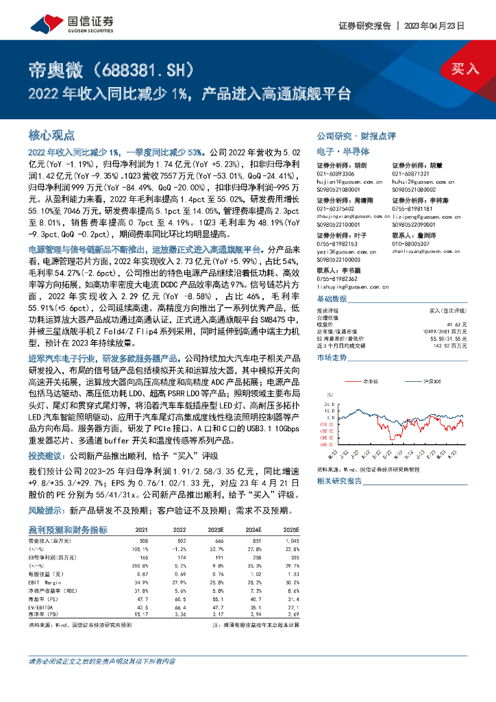 国信证券:帝奥微(688381)-2022年收入同比减少1%,产品进入高通旗舰平台.pdf