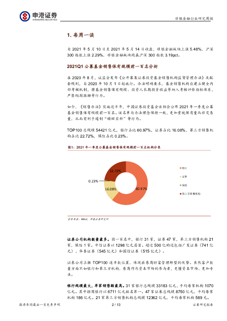 申港证券:非银金融行业周报:2021Q1公募基金保有规模 TOP100券商近半数.pdf