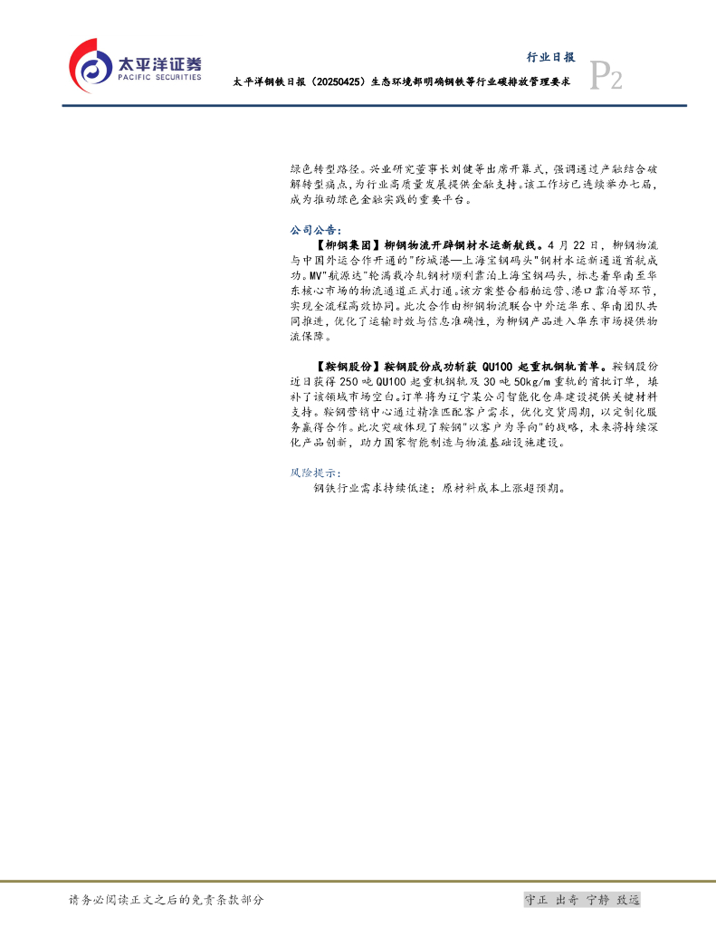 太平洋证券:钢铁日报:生态环境部明确钢铁等行业碳排放管理要求.pdf