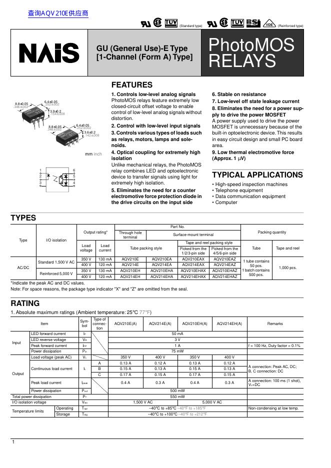 NAIS PhotoMos RELAYS 数据手册.pdf