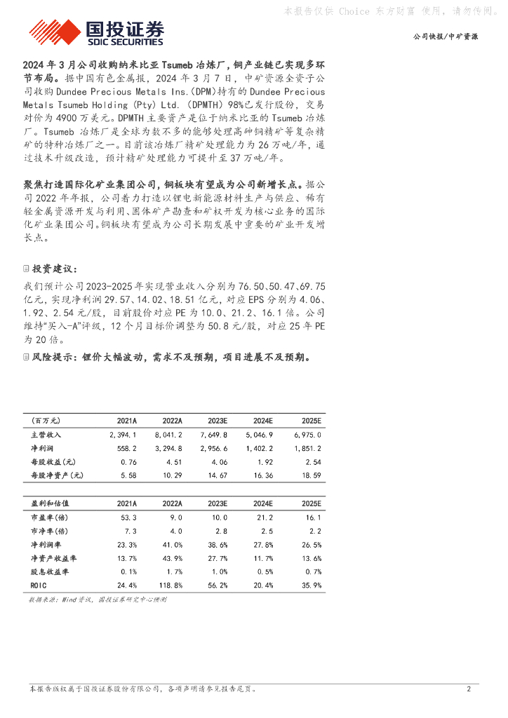 国投证券:中矿资源(002738)-拟收购赞比亚Kitumba铜矿,加快布局铜资源板块.pdf