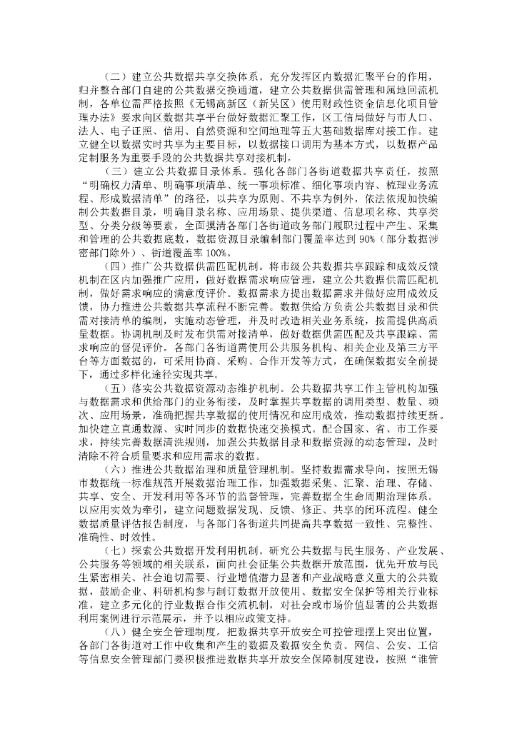 无锡高新区(新吴区)关于建立健全公共数据共享开放运行机制加快推进数据有序共享开放的实施方案.doc