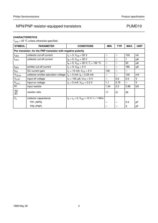 PHILIPS PUMD10 NPN/PNP resistor-equipped transistors 数据手册.pdf