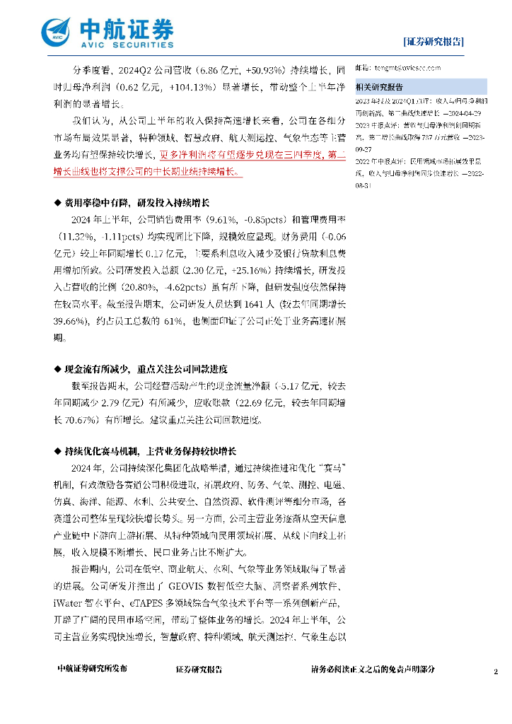 中航证券:中科星图(688568)-2024年中报点评:抢抓“商业航天+低空经济”发展机遇,营收维持高速增长.pdf