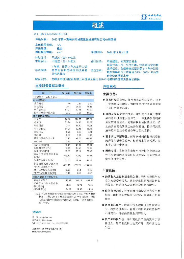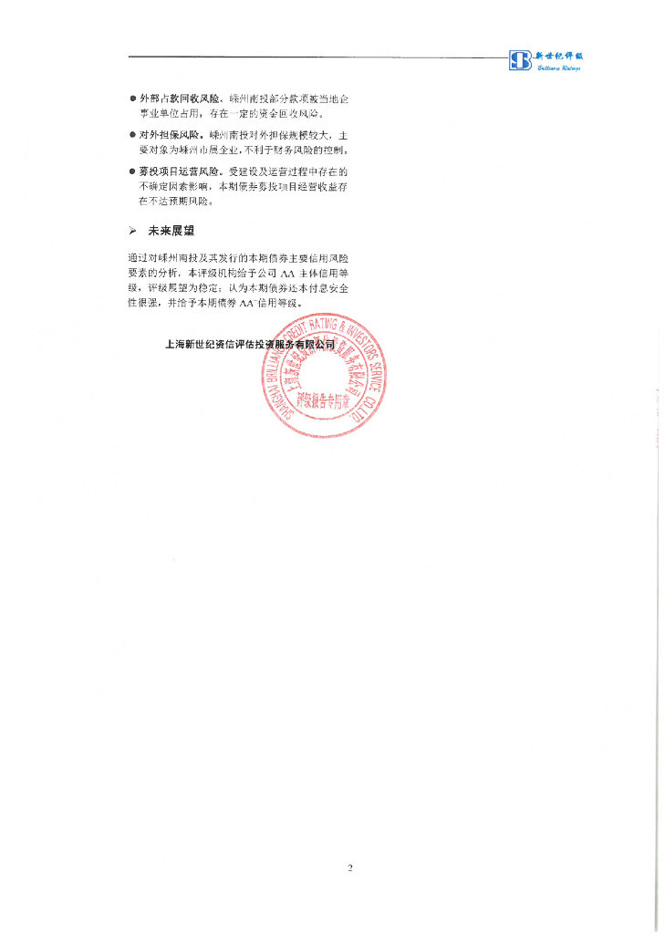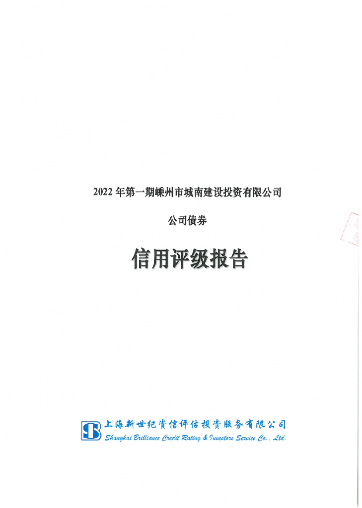 新世纪:2022年第一期嵊州市城南建设投资有限公司公司债券信用评级报告.pdf