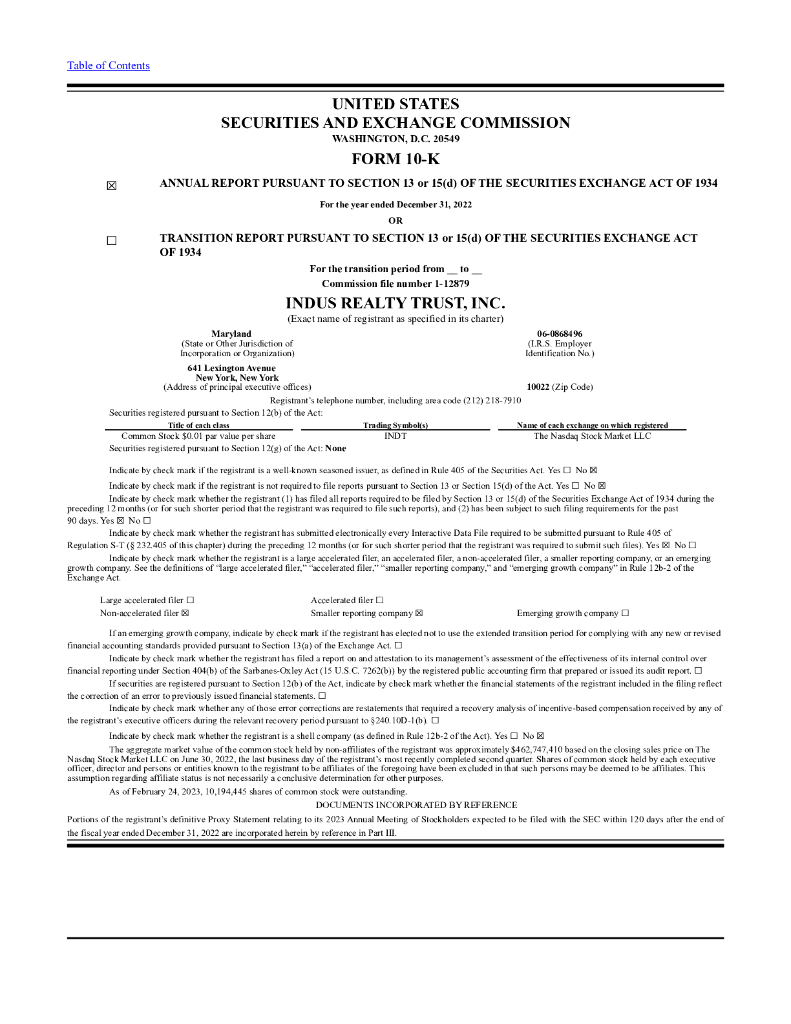 INDUS Realty Trust(INDT)2022财年年度报告(英文版).pdf