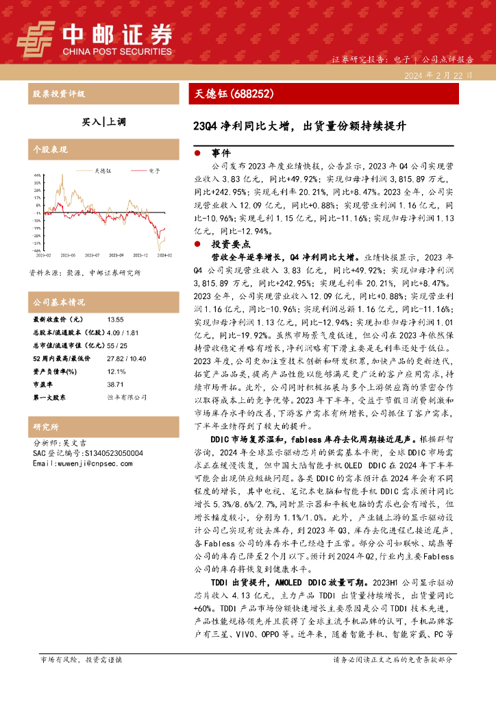 中邮证券:天德钰(688252)-23Q4净利同比大增,出货量份额持续提升.pdf