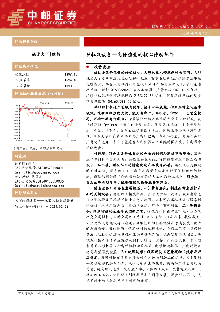 中邮证券:机械设备深度报告:丝杠及设备—高价值量的核心传动部件.pdf