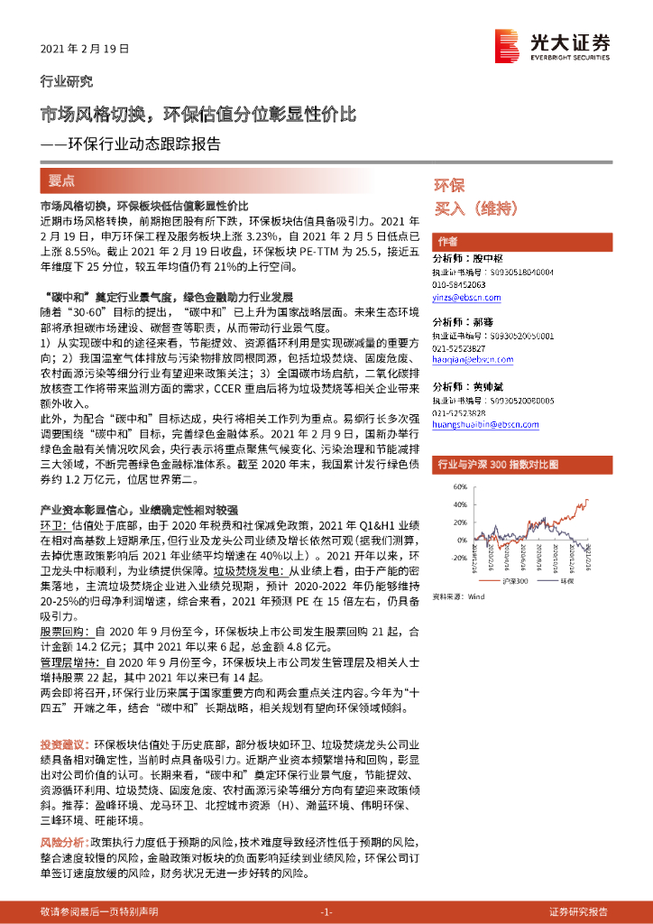 光大证券:环保行业动态跟踪报告:市场风格切换,环保估值分位彰显性价比.pdf